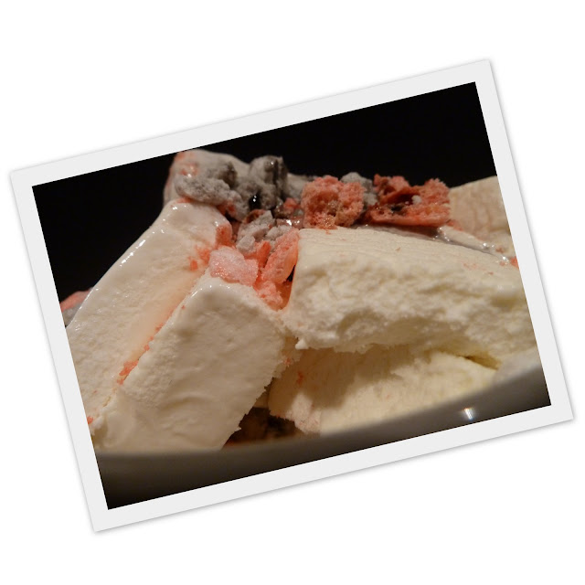 Säästin muutaman tekemistäni marengeista ja murskasin ne viikonloppuherkuksi jäätelön päälle.